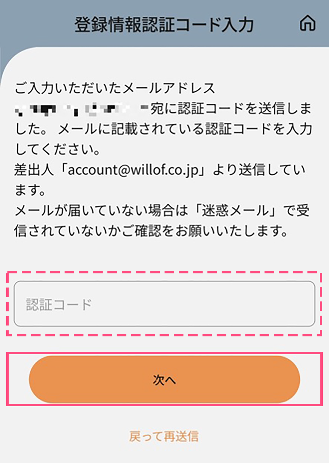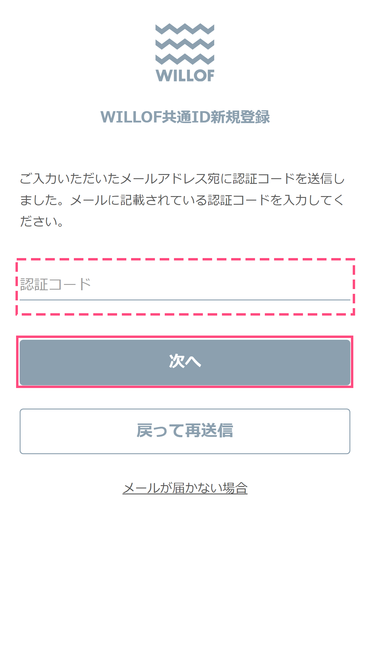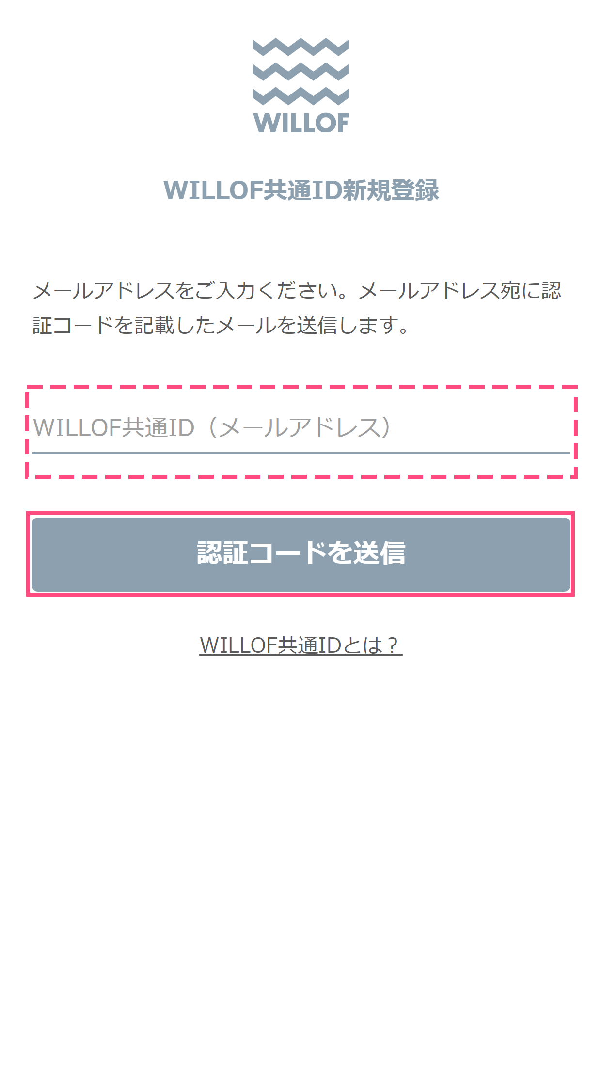 IDとして使用するメールアドレスを入力し、認証コードを送信