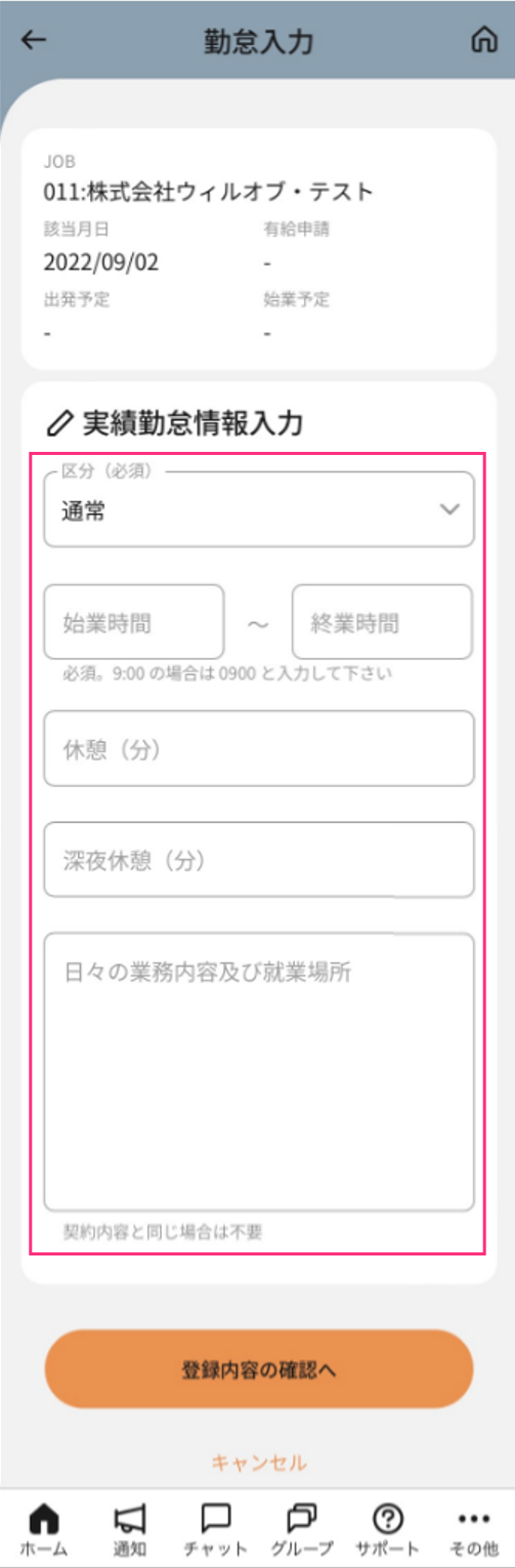 - 通常:予定シフト通りに出勤する場合に使用